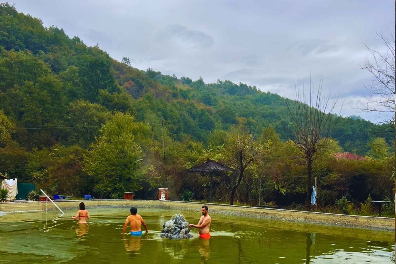 O teu dia começa com uma viagem panorâmica pelas colinas encantadoras em redor de Elbasan, onde as águas termais naturais te esperam. Mergulha nas fontes quentes, deixa o stress desaparecer e desfruta dos sons da natureza à tua volta.