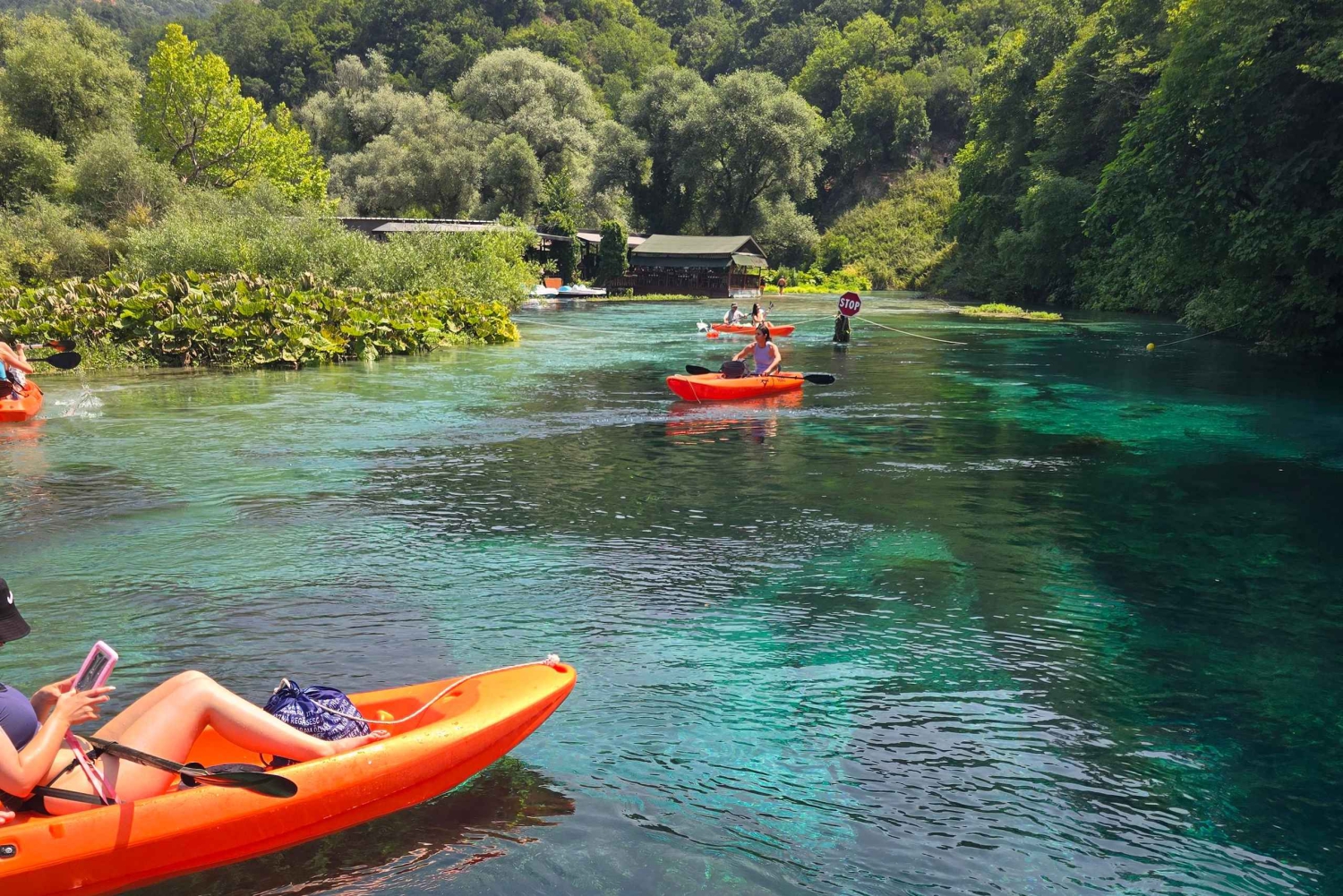 - Каякинг и Голубое Око Время: Каякинг длится примерно 1 час 20 минут, включая свободное время для купания, фотографирования или отдыха на озере. После каякинга группа проведет 1 час у источника Голубое Око, исследуя его в своем собственном темпе. Пожалуйста, возьмите с собой купальные костюмы, полотенце и фотоаппарат для фотографирования.