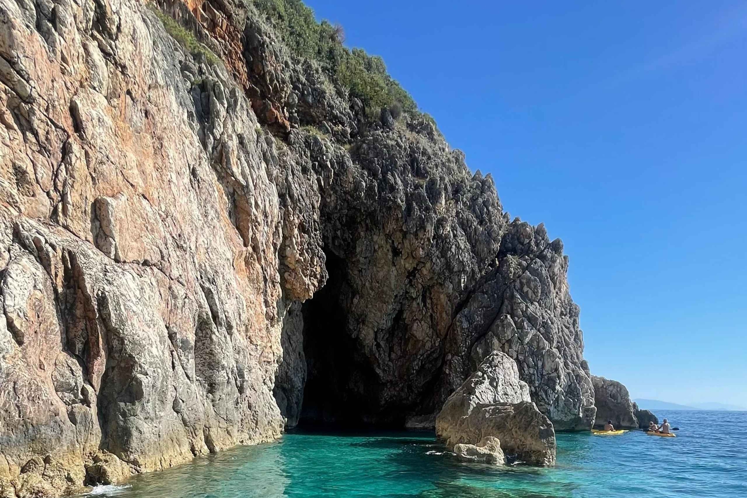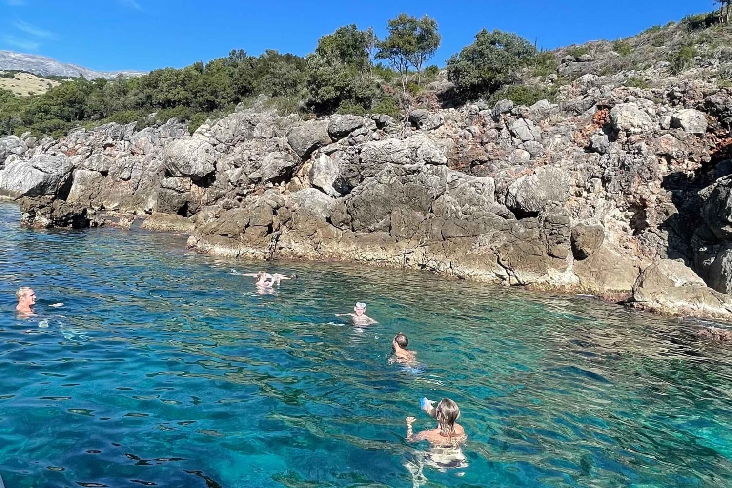 Ge dig ut på en Golden Båttur från Himara till den legendariska Pirate's Cave & Secret Cave. Simma, snorkla och utforska dolda stränder och hisnande klippor på detta oförglömliga äventyr. (små grupper)